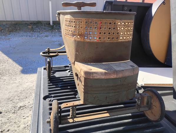 This is an old-school vintage tricycle-style push cart made of solid metal and wood. It has great patina, original wheels, and classic mid-century design details — perfect for restoration, rustic décor, or display in a shop, garage, or man cave. The steering and wheels still move, and it has that authentic aged look you just can’t fake.