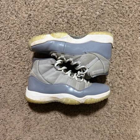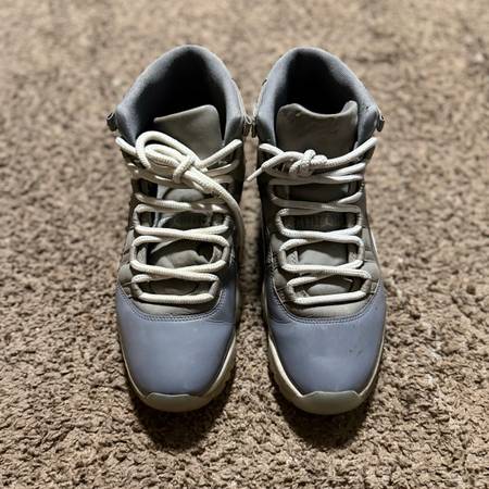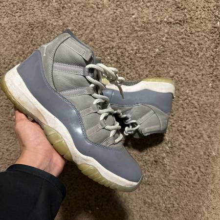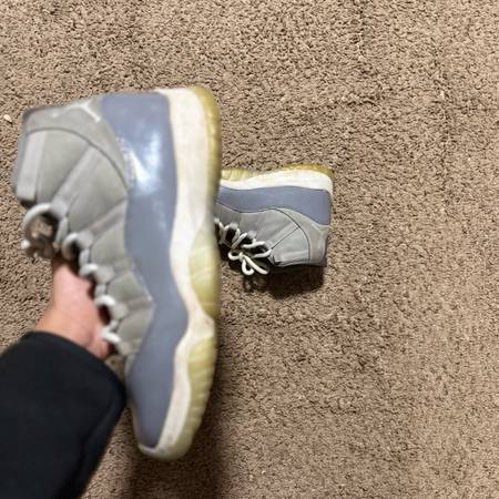 a mid-top sneaker featuring a grey nubuck upper, a patent leather mudguard, and an icy translucent outsole