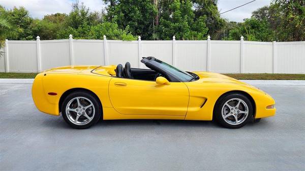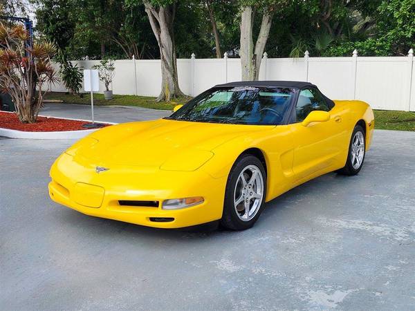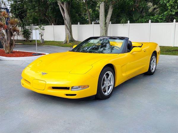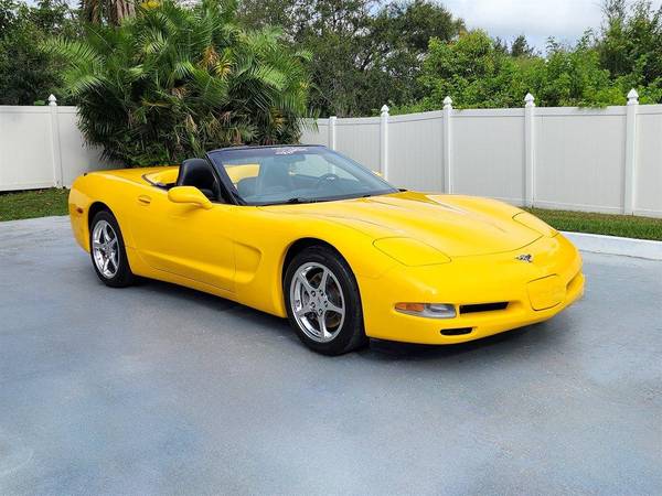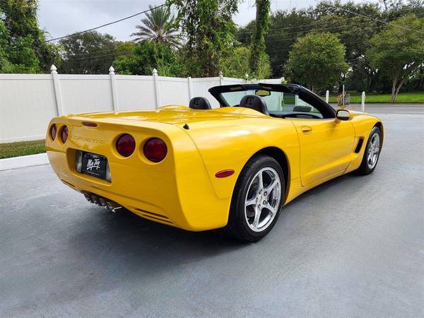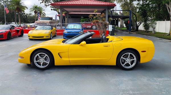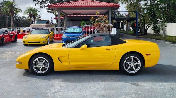 CORVETTE 2003 CONVERTIBLE, Millennial Yellow with Black Leather Interior and Black Convertible Top, RARE 6- speed Manual Transmission, Dual Power Sport Seats, Head Up Display, Memory Package, Dual Zone Climate Control Air Conditioning, AM-FM Stereo with CD Player and Bose Speakers, Active Handling, Polished Aluminum Alloy Wheels, Custom Corsa Exhaust, This stunning Corvette has been driven on average less than 1,300 miles per year. LS1 Engine 5.7 Liter Fuel Injected 350 H.P. V8. This vehicle qualifies for our exclusive V.I.P. financing plan. Sale $25,850 / $289 mo V.I.P. Call for details. Toy Store, Largo Fl. 727-585-6000 www.vettenet.com Open 6 days, Sunday by appointment WE BUY CLEAN CORVETTES! Trades considered Shipping assistance available to 48 states for $689. We can help with less than perfect credit. SELLING QUALITY LOW MILEAGE CORVETTES FOR 60 YEARS! EXPECT TO BE IMPRESSED PERFORMANCE SPOKEN HERE