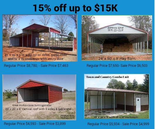 πFall Sale..... Up to 35% off all Steel Structures!π Sales and manufacturing facilities located in Texas (not an out of state company) βAlso servicing AR, OK, LA and MO All Steel Buildings up to 60'...