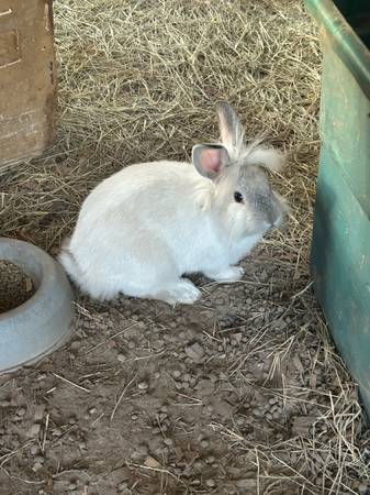 Mom is a large white meat rabbit Dad is a standard lion head 3 male rabbits that are 14 weeks old. Ready now. $20 each