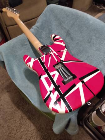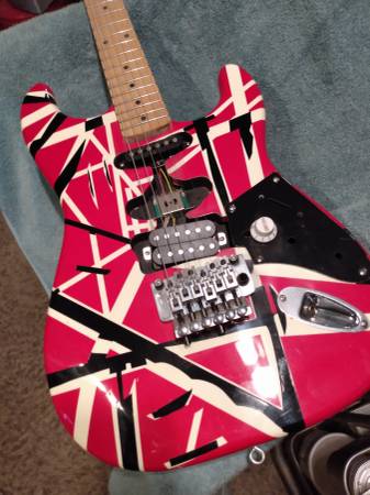 EVH Guitar Stratocaster Relic Red Franke Electric guitar Black and White Stripes , Maple Neck,Floyd Rose Tremlo Bridge Bar Brand new never used 325 , also have an Stage Right 20 Watt amp new in Box...
