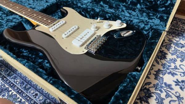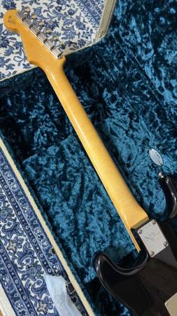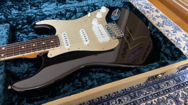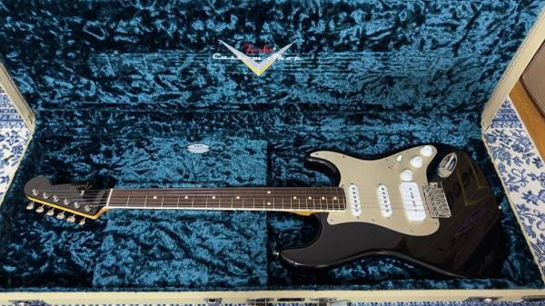 This guitar, crafted by master builder Denis Galuszka, is based on a 1960 Stratocaster and features binding, a slab board, matching headstock, gold anodized pickguard, a rear P-60 pickup, and 22 frets. NOS specifications are extremely rare now, so it's unlikely to come along again in the future.