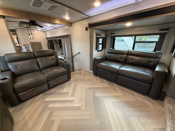 -Spacious front living with 2 pull out sofa beds and theater seating. Entertainment center with fireplace.