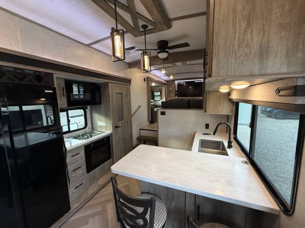 -Kitchen has plenty of counter space and storage. Residential refrigerator. Pantry and Bar area for dining.