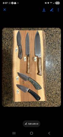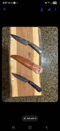 Knife and sheath $300 OBO knife only $250 OBO. Forging marks or polished I can make you shine at camp this year.