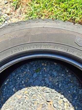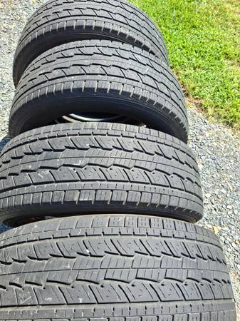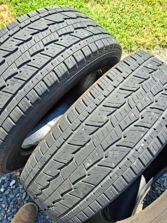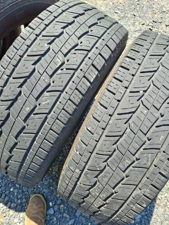 4 LT 265/60/R20 General Grabber with 25K miles. Orginal tires from 2018 Titan XD, no flats patches or plugs and not cracking. Vehicle was garaged only exposed to weather on trips. Asking $400 for all. New $1200. Text or call please don't email between 10am and 10 pm.