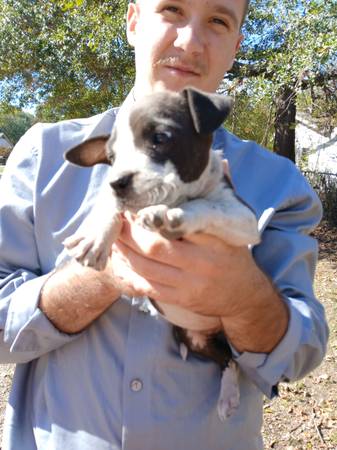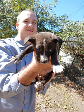 Free one month old male puppies, very friendly and energetic around children and people alone, love to play, they have no shots, comes with a bag of free puppy food,